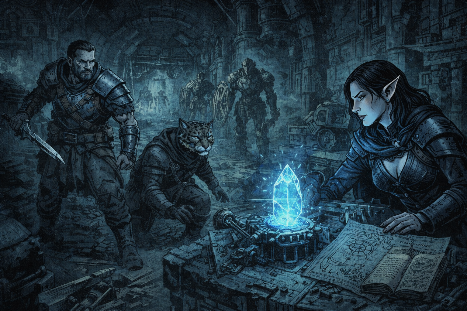 Keep the rhythm classic: advance, observe, test, commit, pay. Every corridor asks a question. Move fast and risk traps, or move slow and give the ruin time to wake. Clever solutions should feel clean. Force should be allowed, but costly. Combat should be dangerous without becoming constant. The Dwemer does not flood you with enemies. It places guardians where they matter and lets the ruin do the rest. Use skill checks as texture. Perception does not “find the trap,” it notices the wrongness that lets the party respond. Lockpicking buys time and avoids noise. When someone fails, do not stop the dungeon. Let it bite and keep moving.